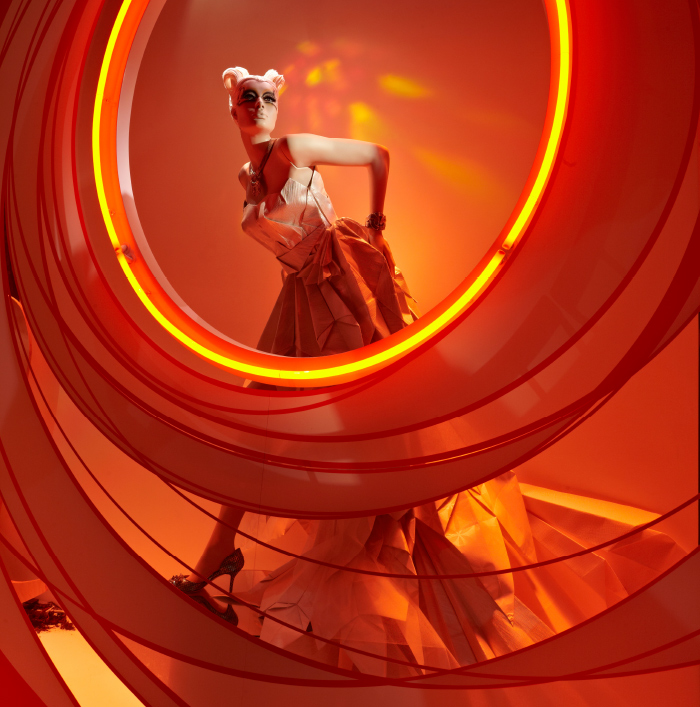 Origami dress created from wallpaper
