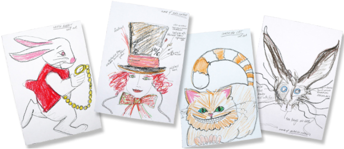 Wonderland initial sketches for window display, 20cm x 30cm